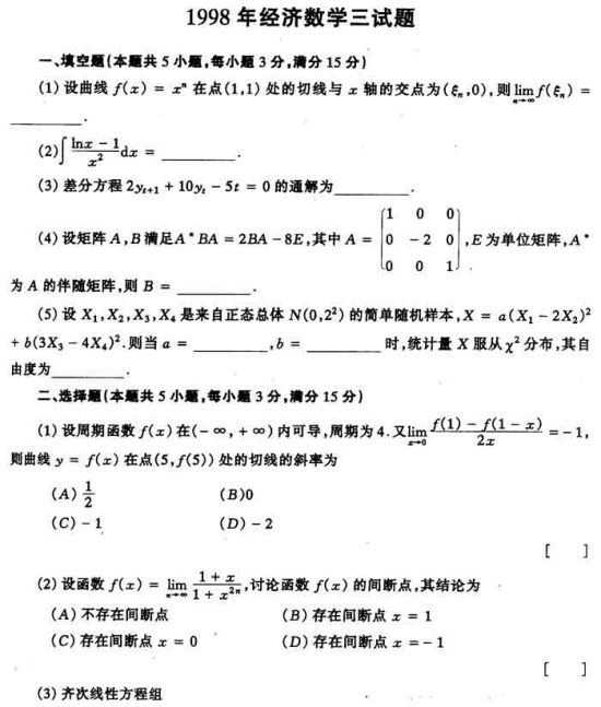 1998全国硕士研究生入学考试数学三试题