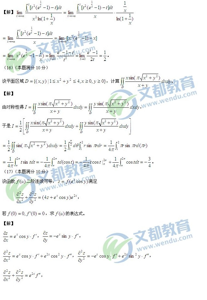 | 2014考研数学三真题答案·解答题 | 点击查看 |