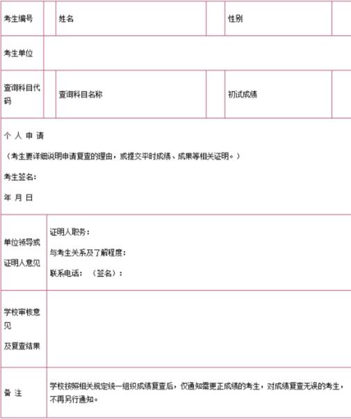 根据全国硕士研究生招生考试试卷保密工作有关规定,初试成绩公布后,对评卷结果有异议的考生可按程序申请成绩复查。复查工作由学校研究生招生办工作人员进行,仅核实是否存在漏判、成绩累计和登记错误等情况,考生本人不接触试卷。拟提请成绩复查者,必须填交《复查申请表》(格式见附件),并于2月19日12:00前向学校提出书面申请(考生可发邮件至jlgyzb@126.com),未提交或逾期提交申请者学校不予受理。