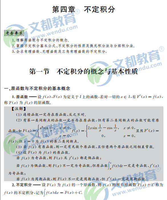 2017考研数学复习:高等数学辅导讲义之第四章不定积分