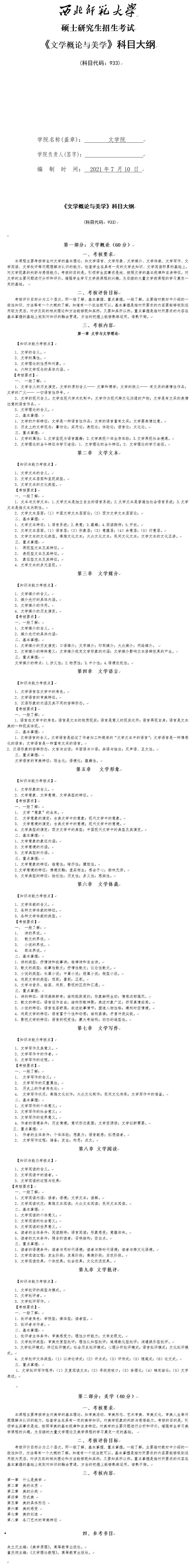 西北师范大学2022硕士研究生招生考试专业课大纲已公布,考研大纲是规定全国硕士研究生入学考试相应科目的考试范围、考试要求、考试形式、试卷结构等政策指导性考研用书。文都考研网为大家整理“2022年西北师范大学933文学概论与美学考试大纲”相关内容,快来一起看看吧~