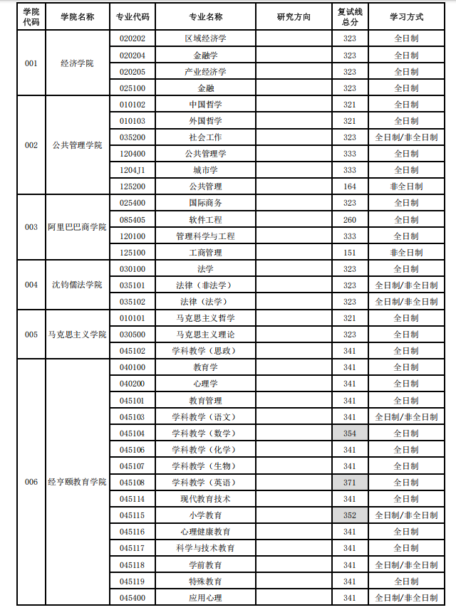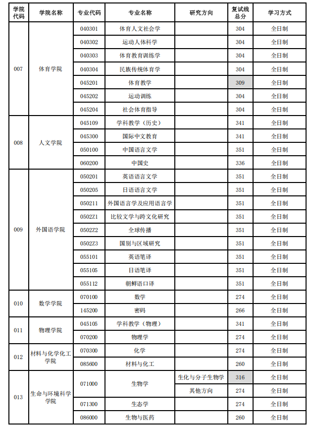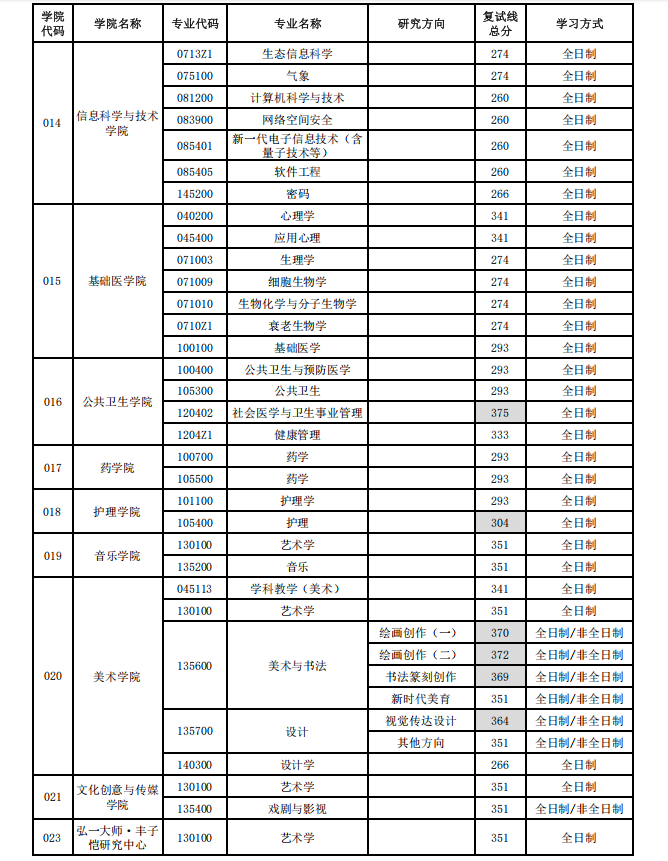 同一学院专业(领域)的全日制和非全日制考生执行相同的复试标准和分数线。