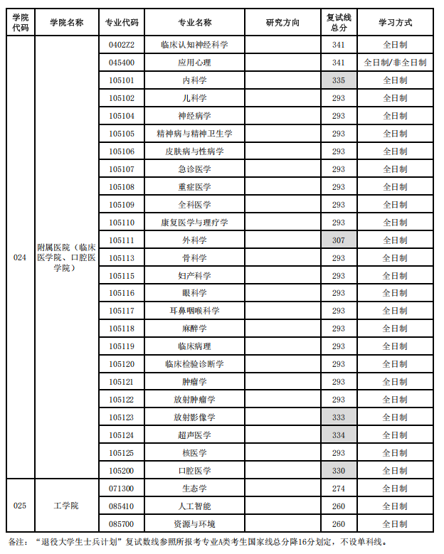 其中“退役大学生士兵计划”考生复试基本分数线为在相应学科专业A类考生国家线的基础上总分降16分,不限单科线。
