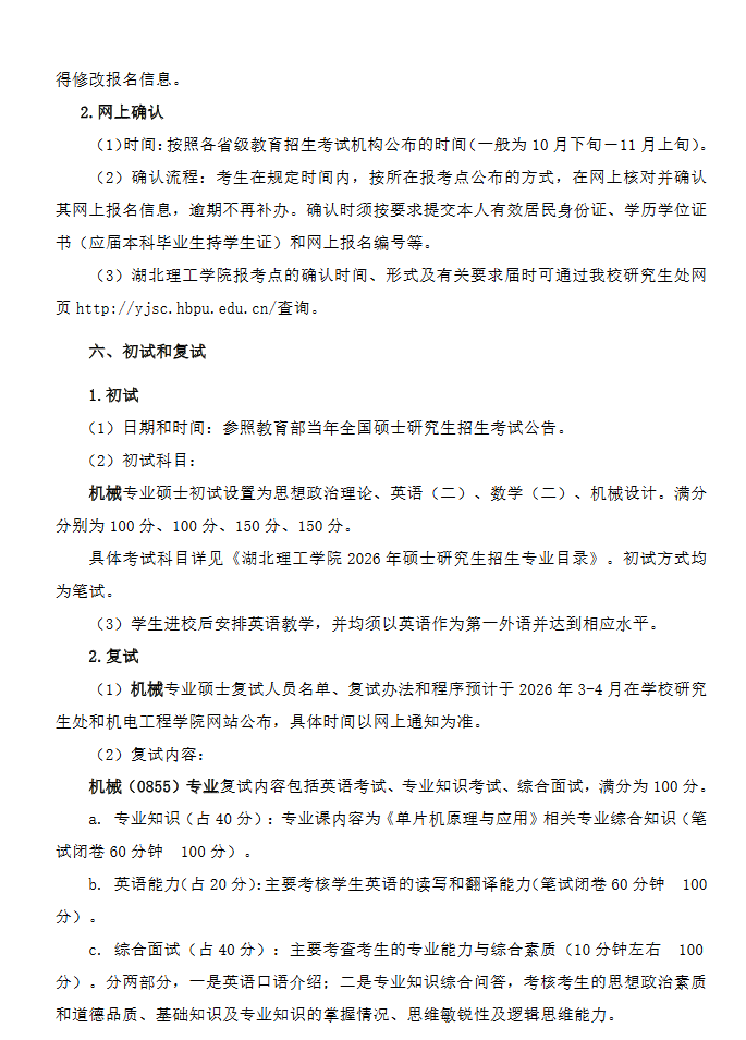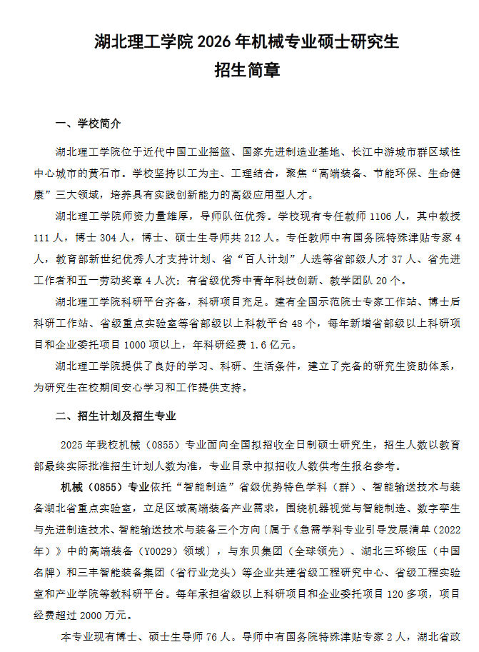 以上,就是湖北理工学院2026年机械专业硕士研究生招生简章的全部内容,想要了解更多考研方面的相关信息,请您持续关注文都考研网!