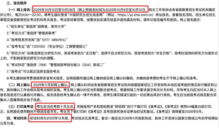 南华大学的招生简章中已经明确2026考研报名时间